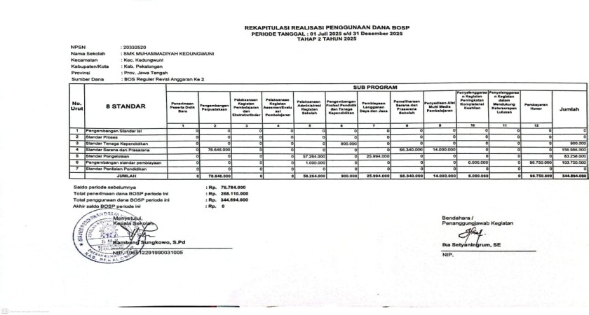 Laporan BOS Tahap 2 Tahun Anggaran 2025